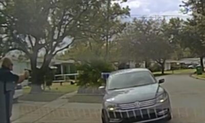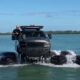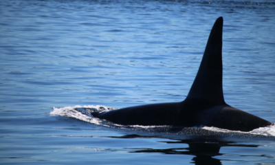 In video footage filmed by a shocked local, the marine mammal’s dorsal fin can be seen popping in and out of the water.